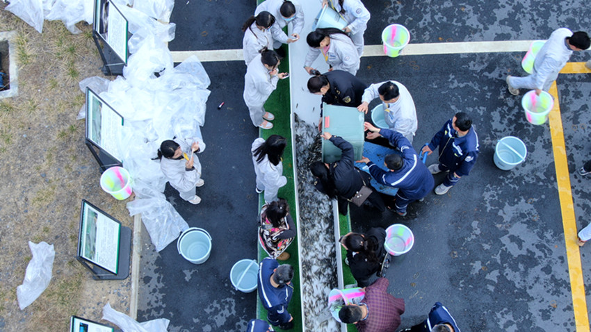 嚴(yán)格按標(biāo)準(zhǔn)放流魚(yú)苗。雅江縣農(nóng)牧農(nóng)村和科技局/圖
