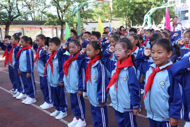 上午8點30分,活動正式開始,升國旗、唱國歌、行隊禮,孩子們激動的心情溢于言表。在新隊員入隊儀式上,共有138名學生加入光榮的中國少年先鋒隊組織,老隊員們?yōu)樗麄兣宕骷t領(lǐng)巾,鮮艷的紅領(lǐng)巾在新隊員的胸前飄揚,也在燦爛的朝陽下熠熠閃光。隨后,該校對獲得“2022—2023年度“優(yōu)秀少先隊員”“優(yōu)秀班干部”“紅領(lǐng)巾一星獎章榮譽”的同學進行了表彰。最后,學校舞蹈社團的孩子們?yōu)榇蠹規(guī)砭实母栉璞硌?,把整個活動推向高潮。 (張燕 攝影報道)
