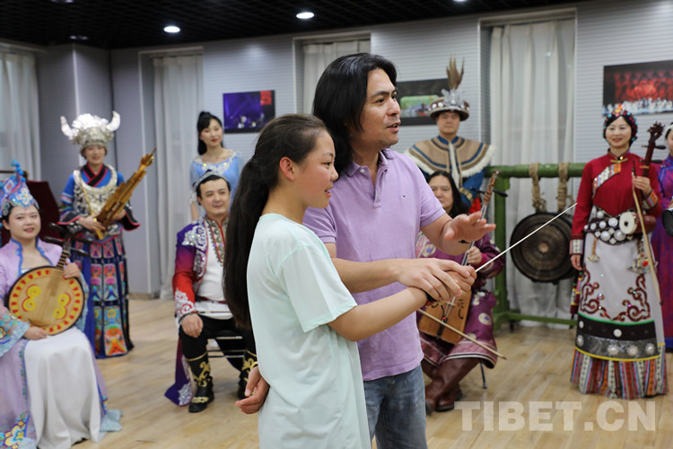 圖為玉樹姑娘體驗(yàn)做樂隊(duì)指揮的快樂 攝影:王茜