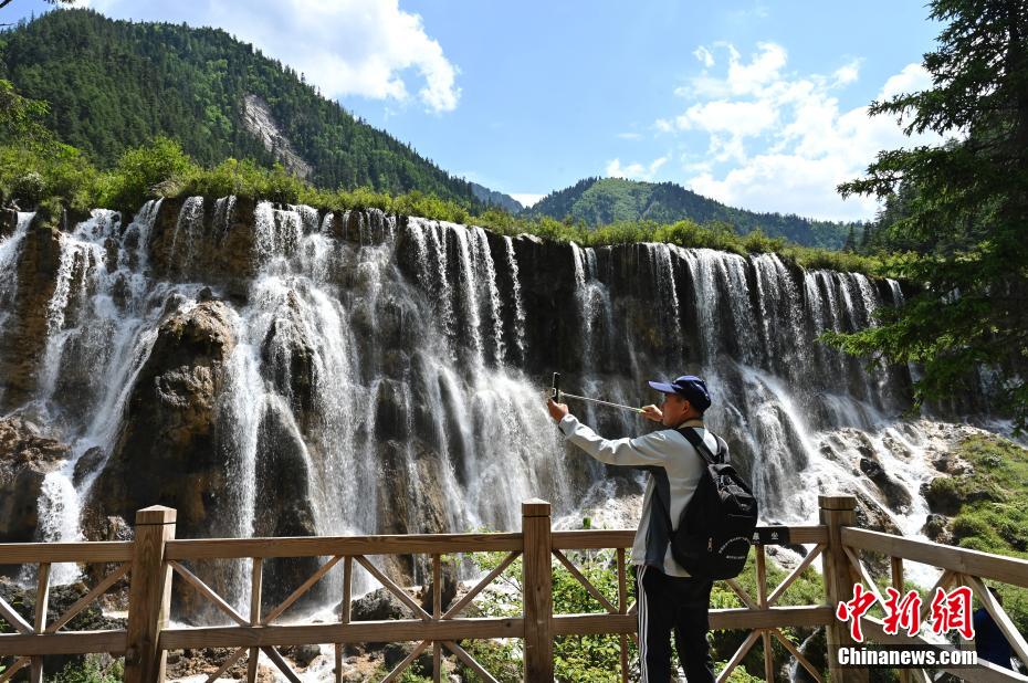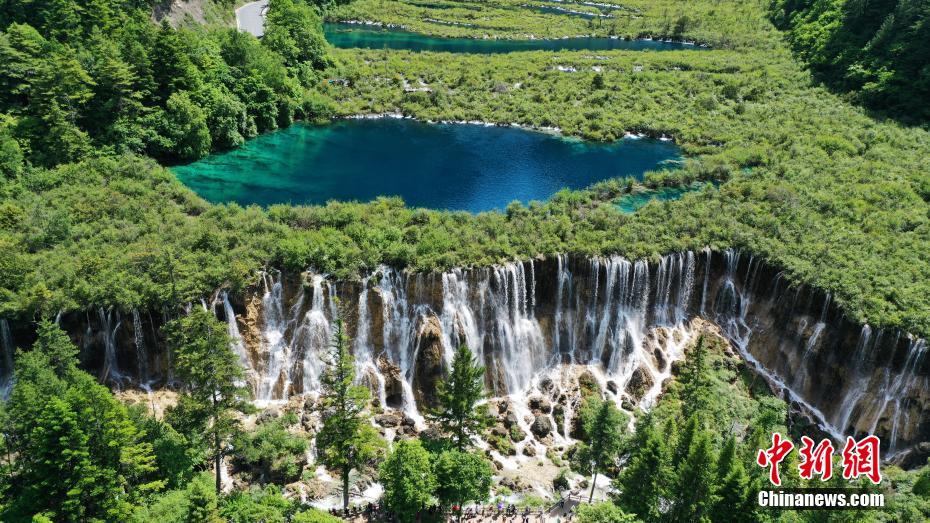 6月8日,初夏時節(jié),世界自然遺產(chǎn)地九寨溝景區(qū)風景如畫,吸引眾多游客觀光游玩。安源 攝