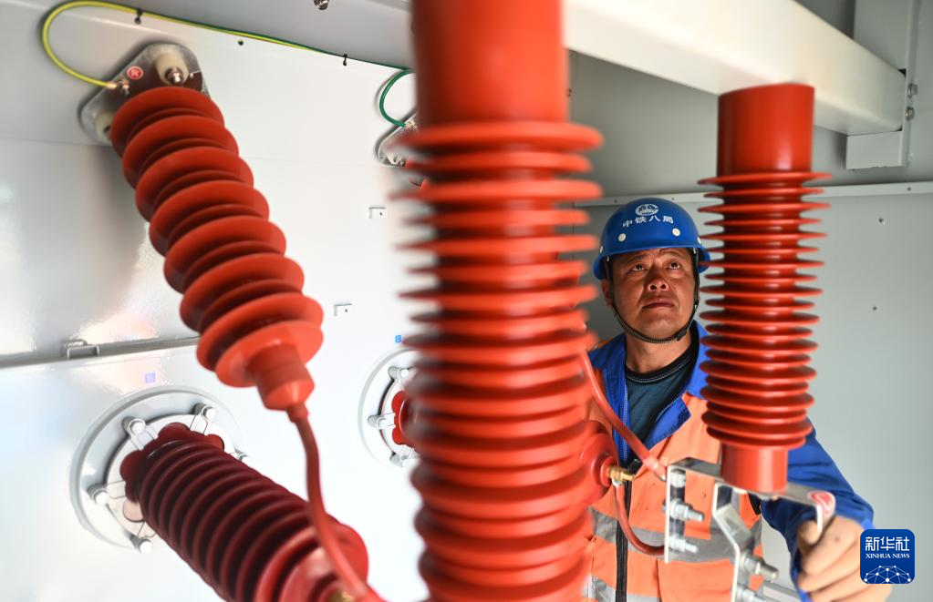 6月10日,中鐵八局施工人員在海西蒙古族藏族自治州德令哈市中國華電50萬千瓦光伏項(xiàng)目現(xiàn)場進(jìn)行檢查。 新華社記者 張宏祥 攝