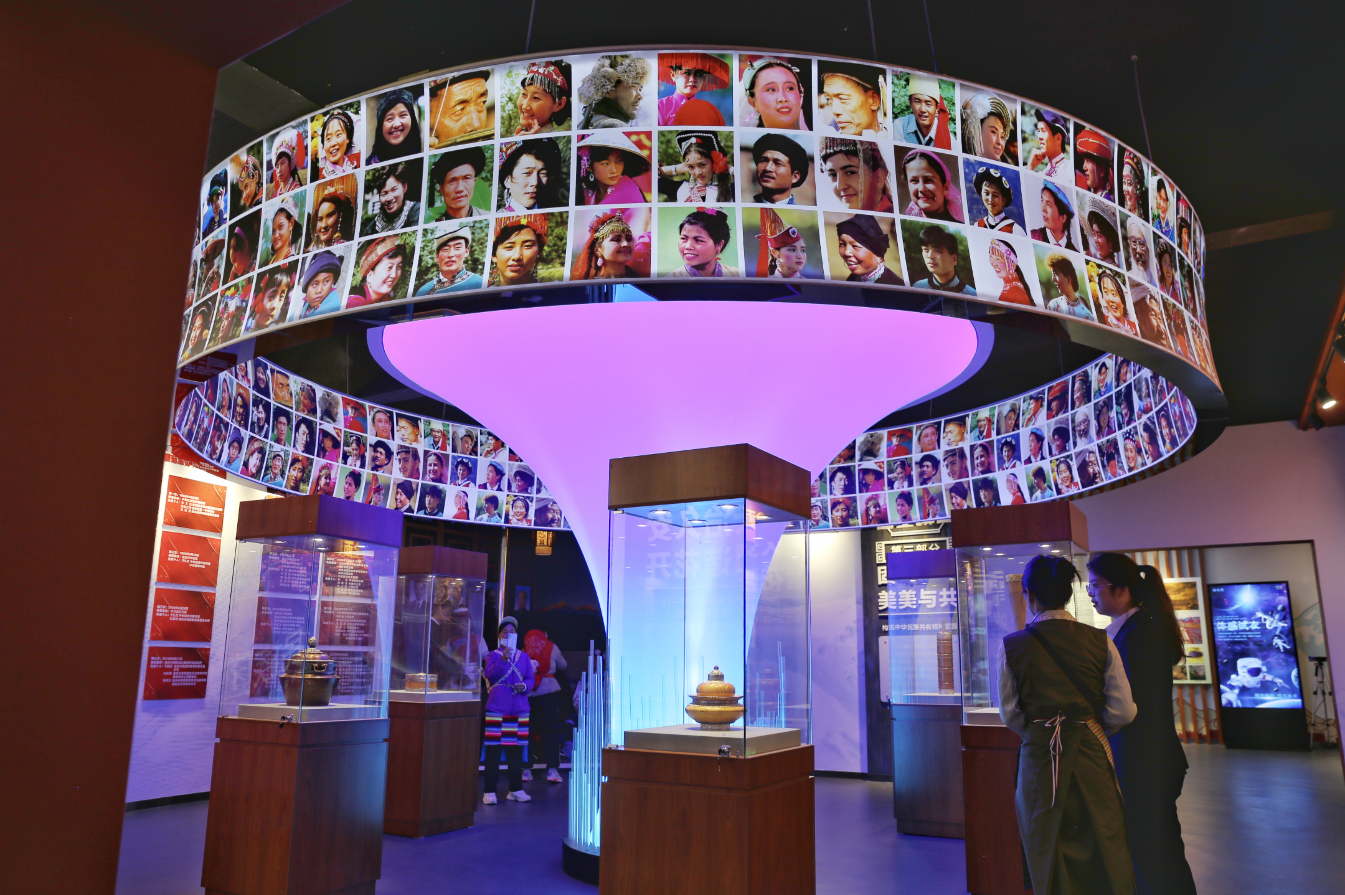 展館內(nèi)設(shè)有電子書設(shè)備、“中華民族全家?!钡袼?、“互動(dòng)換裝”設(shè)備、自行車VR騎行體驗(yàn)設(shè)備、多民族家庭場景、折疊LED屏、民族團(tuán)結(jié)進(jìn)步知識搶答電子設(shè)備及“云南民族團(tuán)結(jié)誓詞碑”模型等,通過互動(dòng)式、體驗(yàn)式教育,增強(qiáng)展館吸引力和功能性。