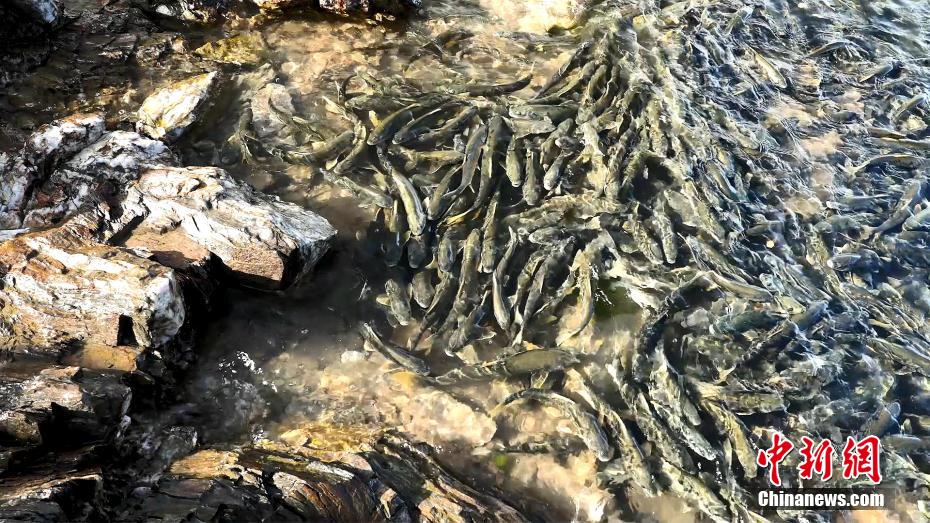 圖為青海湖裸鯉在水流較緩處聚集。