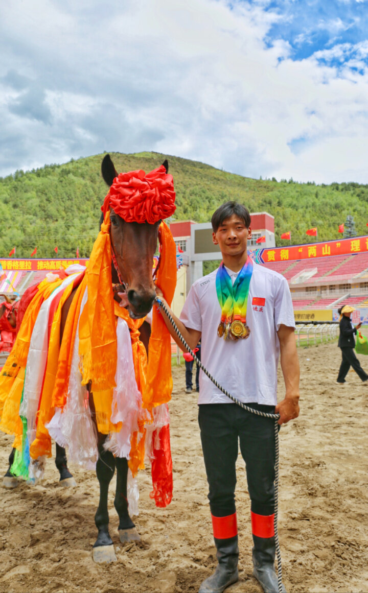 三天來,香格里拉五鳳山賽馬場內(nèi)人頭攢動,熱鬧非凡,州內(nèi)各族群眾和游客從四面八方聚集而來,為三年未能出現(xiàn)在香格里拉端午賽馬現(xiàn)場的駿馬和騎手們搖旗吶喊、加油助威,而來自州內(nèi)及友鄰州市的各代表隊(duì)則不負(fù)眾望,為大家呈現(xiàn)了一場場熱血沸騰的高水平馬術(shù)競技?!拔覐?5歲開始參加比賽,今年是收獲最大的一次,連獲了4枚金牌,我很高興,期待明年的端午節(jié)能再次與來自不同地方的選手切磋?!?3歲的知詩定主說道。此次,他獲得了甲組1000米走馬、甲組3000米走馬、乙組3000米走馬、丙組1000米走馬賽冠軍。與他并駕齊驅(qū)的嘎提七林則在甲組5000米速度賽、丙組5000米速度賽、甲組3000米速度賽、乙組3000米速度賽中獲得金牌。