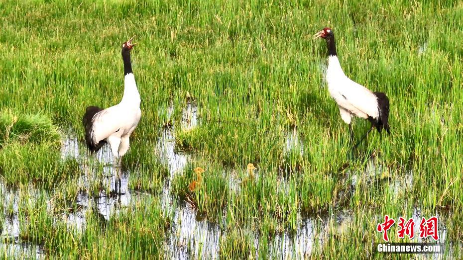 高原黑頸鶴進(jìn)入“育兒季” “一家四口”同框顯溫馨