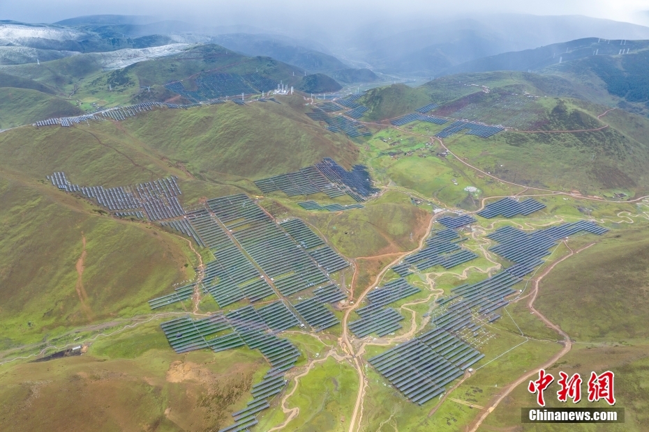 6月24日清晨,云霧下的柯拉光伏電站場一角。(無人機照片)