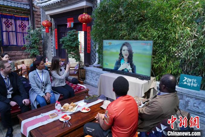 圖為參加“Z世代”畫像中國(guó)網(wǎng)絡(luò)互動(dòng)活動(dòng)的海外青年們觀看“民歌大觀”。主辦方供圖