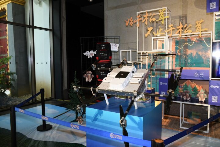 運(yùn)有松茸的無人機(jī)從產(chǎn)區(qū)香格里拉市建塘鎮(zhèn)吉迪村出發(fā),不到20分鐘就被送達(dá)位于市區(qū)香格里拉大酒店的“始于松茸、不止于松茸”第二屆香格里拉松茸論壇暨順豐寄遞解決方案發(fā)布會現(xiàn)場,這是順豐公司給出的2023年松茸寄遞解決方案之一。