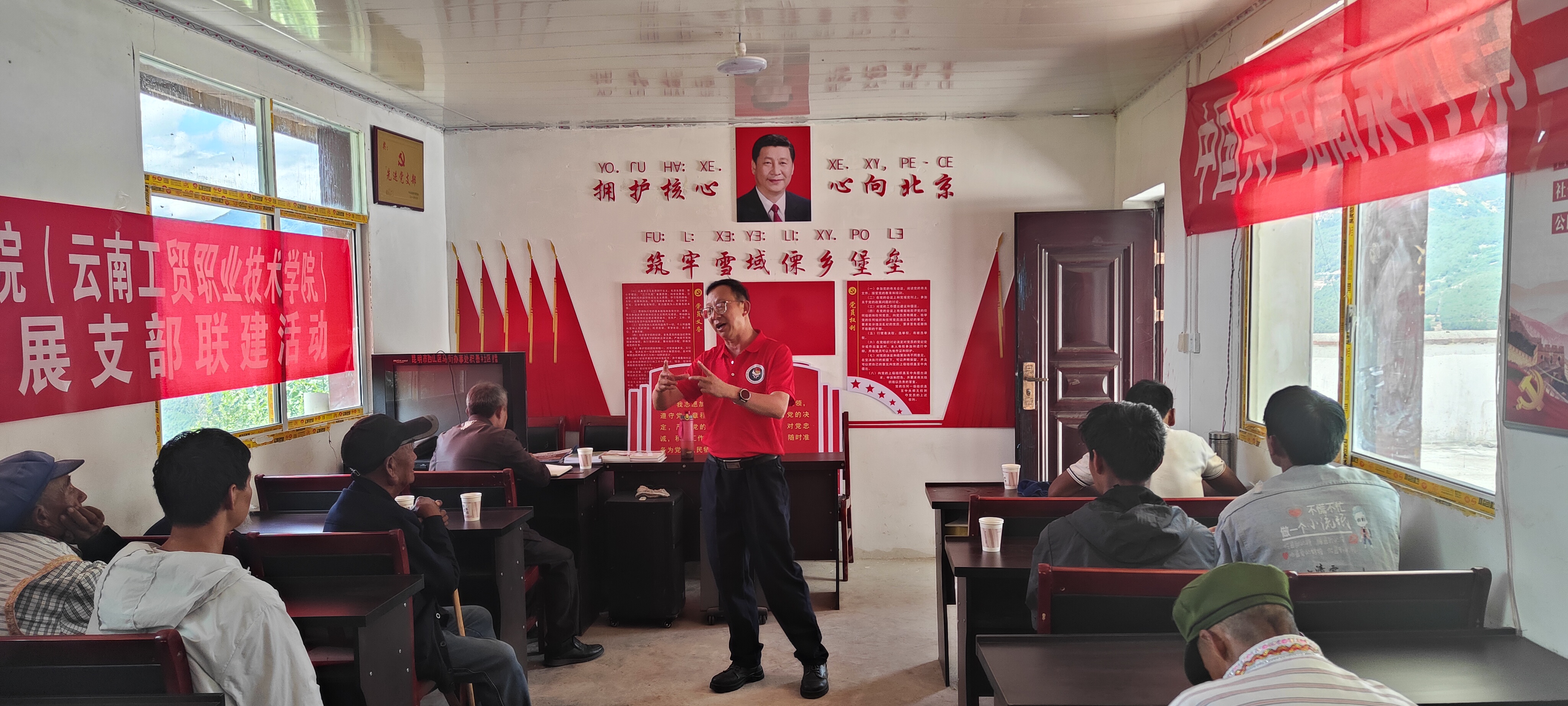 支部聯(lián)建強(qiáng)信心。學(xué)院審計(jì)黨支部、院團(tuán)委黨支部、建筑與工藝技術(shù)系黨支部與高泉村第三、第七黨支部開展支部聯(lián)建活動(dòng),通過(guò)贈(zèng)送種養(yǎng)殖書籍、觀看警示紀(jì)錄片《巡劍破風(fēng)》、合唱紅歌等活動(dòng),為掛鉤點(diǎn)黨員群眾送上精神食糧。