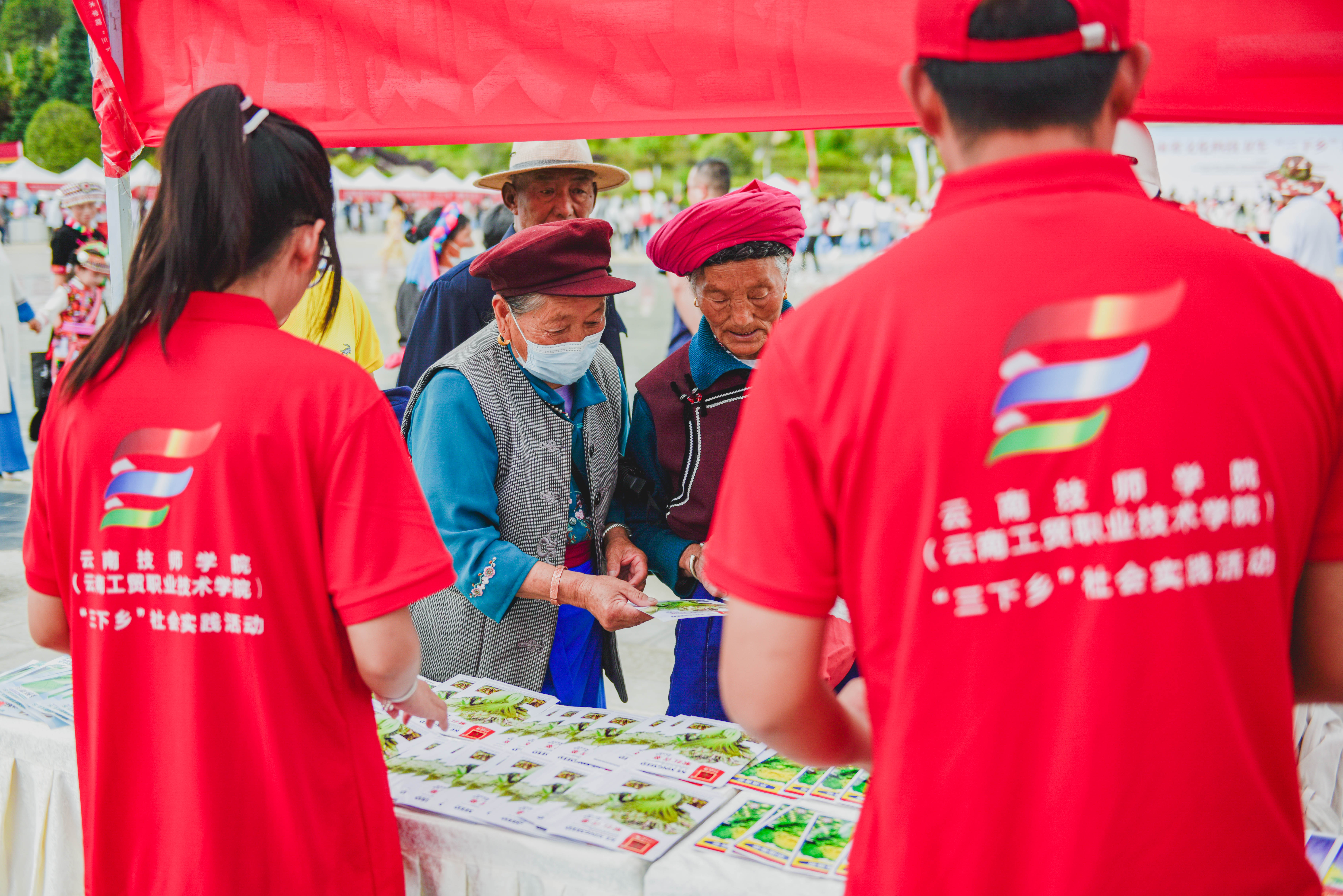 集中示范聚民心。學(xué)院“三下鄉(xiāng)”服務(wù)隊(duì)在維西縣萬(wàn)人廣場(chǎng)參加集中示范活動(dòng),向群眾免費(fèi)發(fā)放了青菜、芥菜、蘿卜等10余類菜種800余包,鼓勵(lì)群眾大力發(fā)展庭院經(jīng)濟(jì),推進(jìn)農(nóng)村人居環(huán)境整治,助力村民增收致富。