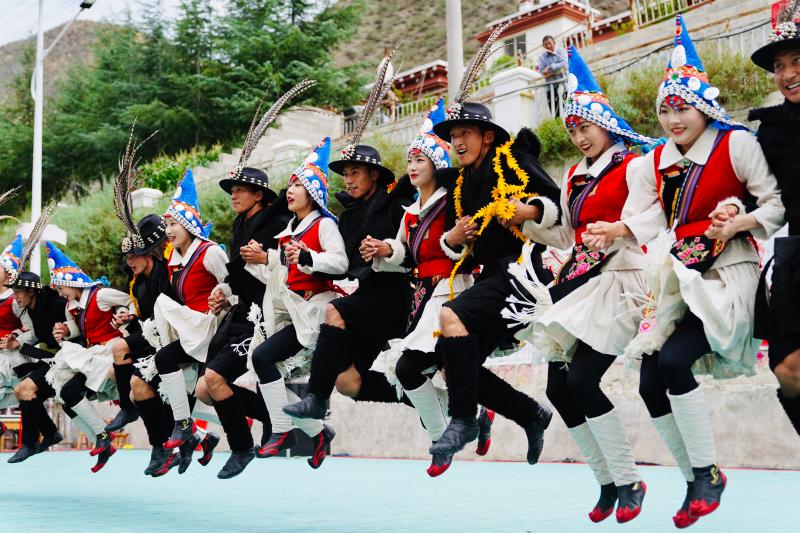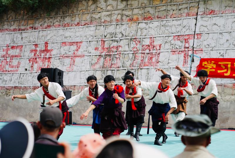 活動(dòng)中,州歌舞團(tuán)高原紅色文藝輕騎兵們?yōu)榇迕駧砹艘粓鑫幕⒀?,歌曲、舞蹈、樂器等藝術(shù)形式精彩紛呈。州歌舞團(tuán)還結(jié)合黨中央決策部署和地方實(shí)際創(chuàng)作了小品類節(jié)目,把黨的二十大精神、民族團(tuán)結(jié)、感恩教育、法治觀念等內(nèi)容融會其中,用地方方言、民族語言,把黨的聲音傳遞到千家萬戶,把黨的溫暖與關(guān)懷送到百姓心中。