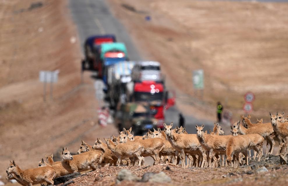 遷徙產(chǎn)仔季,在可可西里五道梁保護(hù)站附近,記者經(jīng)常看到,成群的雌性藏羚羊,在頭羊帶領(lǐng)下,邁著小碎步,整齊而迅速地穿過青藏公路。往來車輛在工作人員指揮下排起長長的隊(duì)伍,沒有鳴笛、沒有圍觀,只有讓行,一切如此自然。