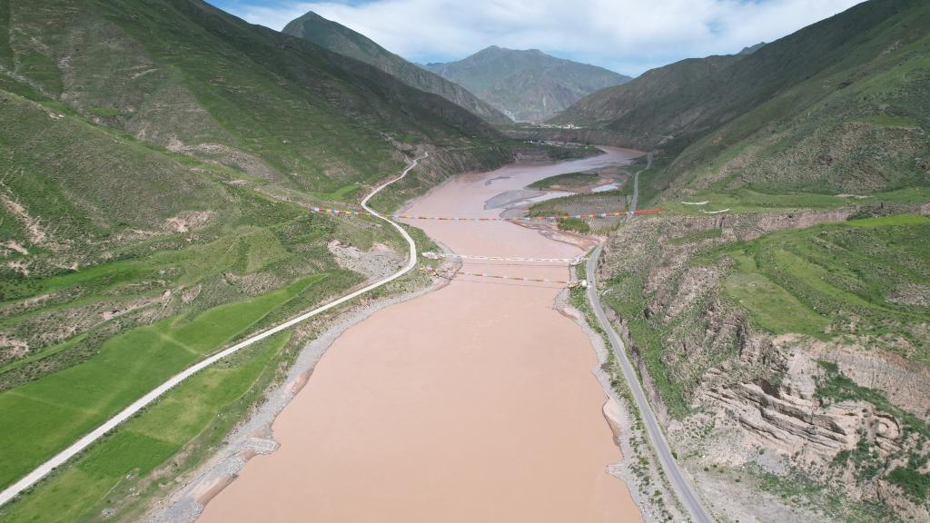 這是7月22日拍攝的通天河直門(mén)達(dá)水文站(無(wú)人機(jī)照片)。新華社記者 劉詩(shī)平 攝