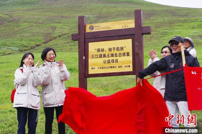 圖為三江源黑土灘生態(tài)修復(fù)公益項(xiàng)目揭牌。北京市朝陽(yáng)區(qū)永續(xù)全球環(huán)境研究所 供圖