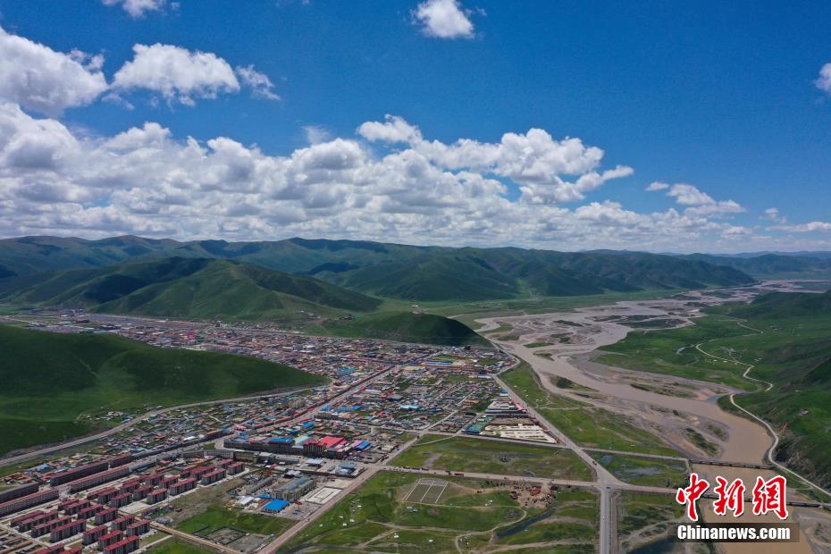 7月28日,航拍青海省果洛藏族自治州達日縣黃河辮狀水系。果洛州達日縣平均海拔在4200米以上,盛夏時節(jié),連綿的山巒披上“綠毯”,黃河流經其境內后,在開闊平緩的河道中數十條水流時而相匯時而分離,交織出巨型的辮狀水系,在群山和城鎮(zhèn)中蜿蜒流淌,形成獨特的高原壯美山河圖。