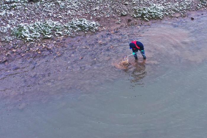 由水利部長江水利委員會長江科學院牽頭組織的2023年江源綜合科學考察正在長江源進行,其中魚耳石是新增研究內(nèi)容。為了采集耳石,來自長江科學院水環(huán)境所的科考隊員劉晗頂著大風和雨雪,穿著下水褲和隊友在長江源區(qū)多條河流中采集魚類樣本,經(jīng)常在冰冷的河水中守候十多分鐘。
