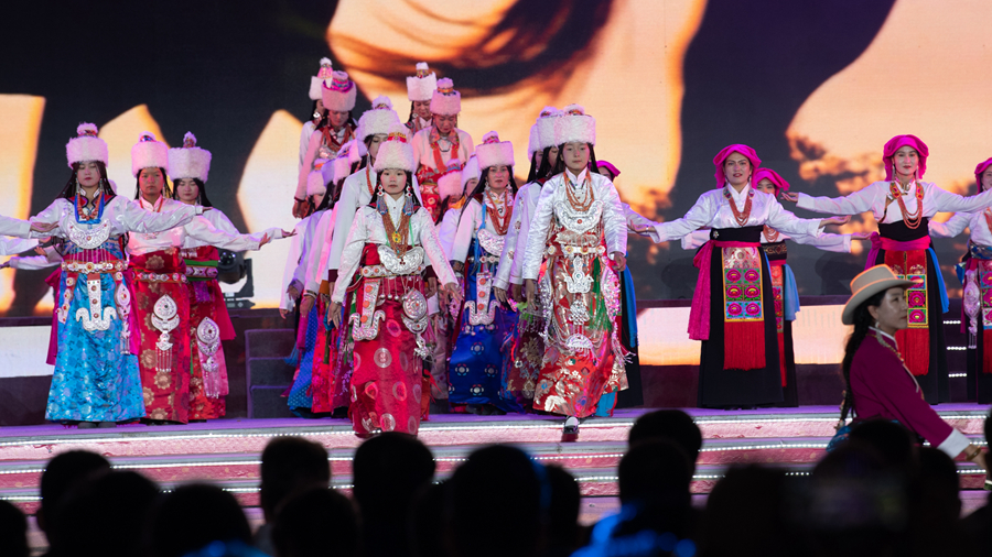 7月31日,慶祝青海省海南藏族自治州成立70周年藏族服飾藝術(shù)嘉年華迎賓晚會現(xiàn)場。