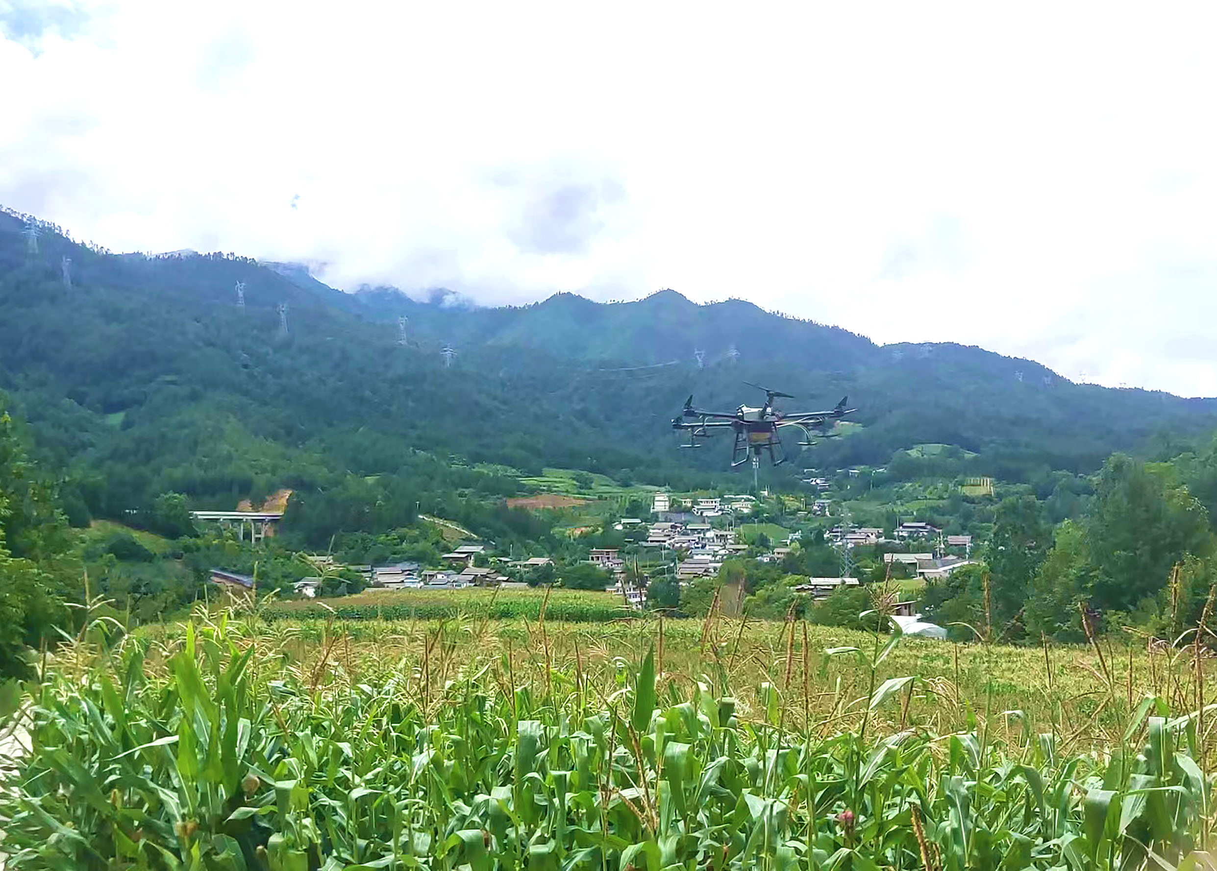 圖為植保無人機正在維西縣永春鄉(xiāng)慶福村進(jìn)行玉米病蟲害飛防作業(yè)。