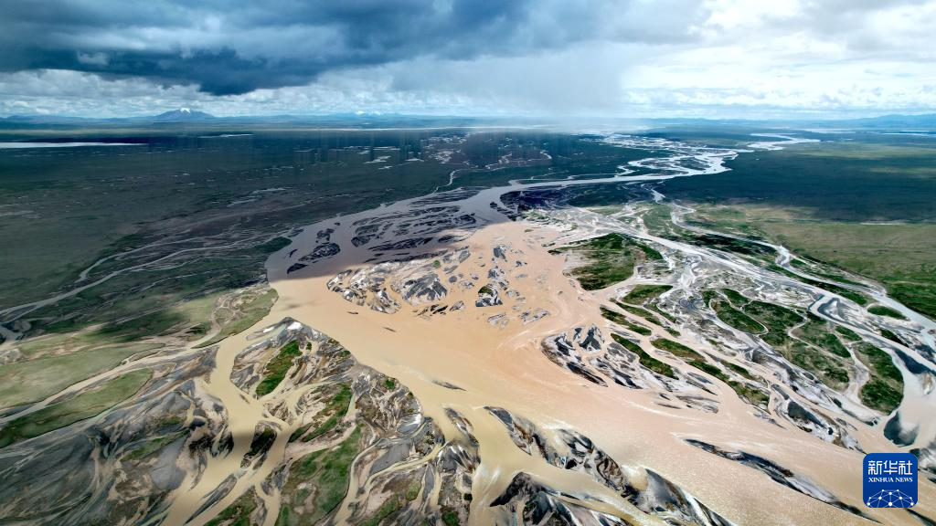 沱沱河與當(dāng)曲匯合處的囊極巴隴,辮狀河道寬度超過3千米(無人機(jī)照片)。新華社記者 劉詩平 攝