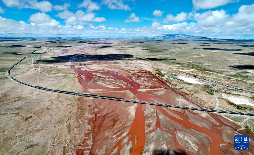 記者看到,在沱沱河與當(dāng)曲匯合處的囊極巴隴,匯合后河流水量增大,辮狀河道寬度超過3千米。青藏鐵路楚瑪爾河大橋之下的楚瑪爾河,暗紅色的河水宛如大地的血管系統(tǒng),流淌在寬闊的辮狀河道里。