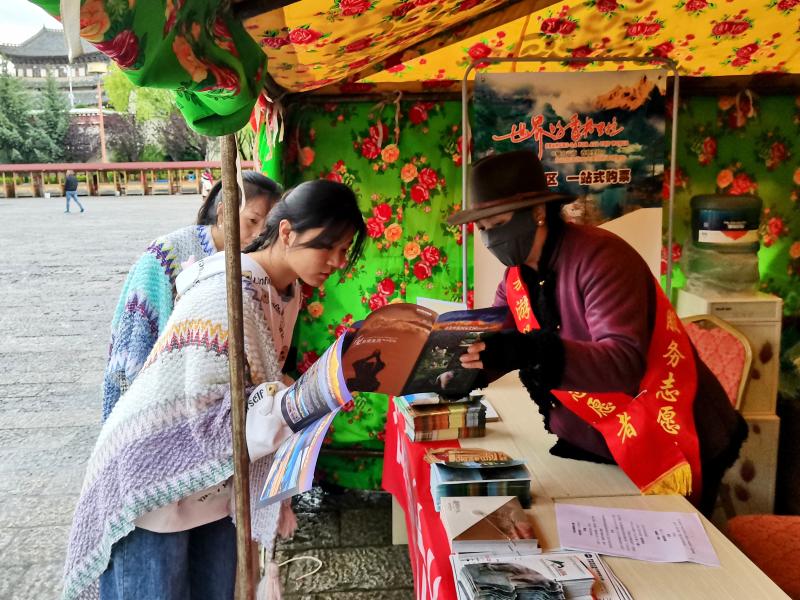 在服務(wù)點(diǎn),游客可以獲取香格里拉各旅游景點(diǎn)、旅游路線和當(dāng)下活動(dòng)的信息介紹,以及景區(qū)門票預(yù)訂指引,還可隨意取閱各類旅游宣傳手冊(cè)、旅游地圖和旅游書籍等。來(lái)自廣州的游客李先生通過(guò)服務(wù)點(diǎn)志愿者的指引到古城旅游服務(wù)中心購(gòu)買了至普達(dá)措景區(qū)的直通車票和景區(qū)門票。“之前不太了解,到這兒?jiǎn)柫藛?wèn)才知道,可以直接搭乘景區(qū)大巴車到普達(dá)措,這樣方便了不少。”李先生說(shuō)。