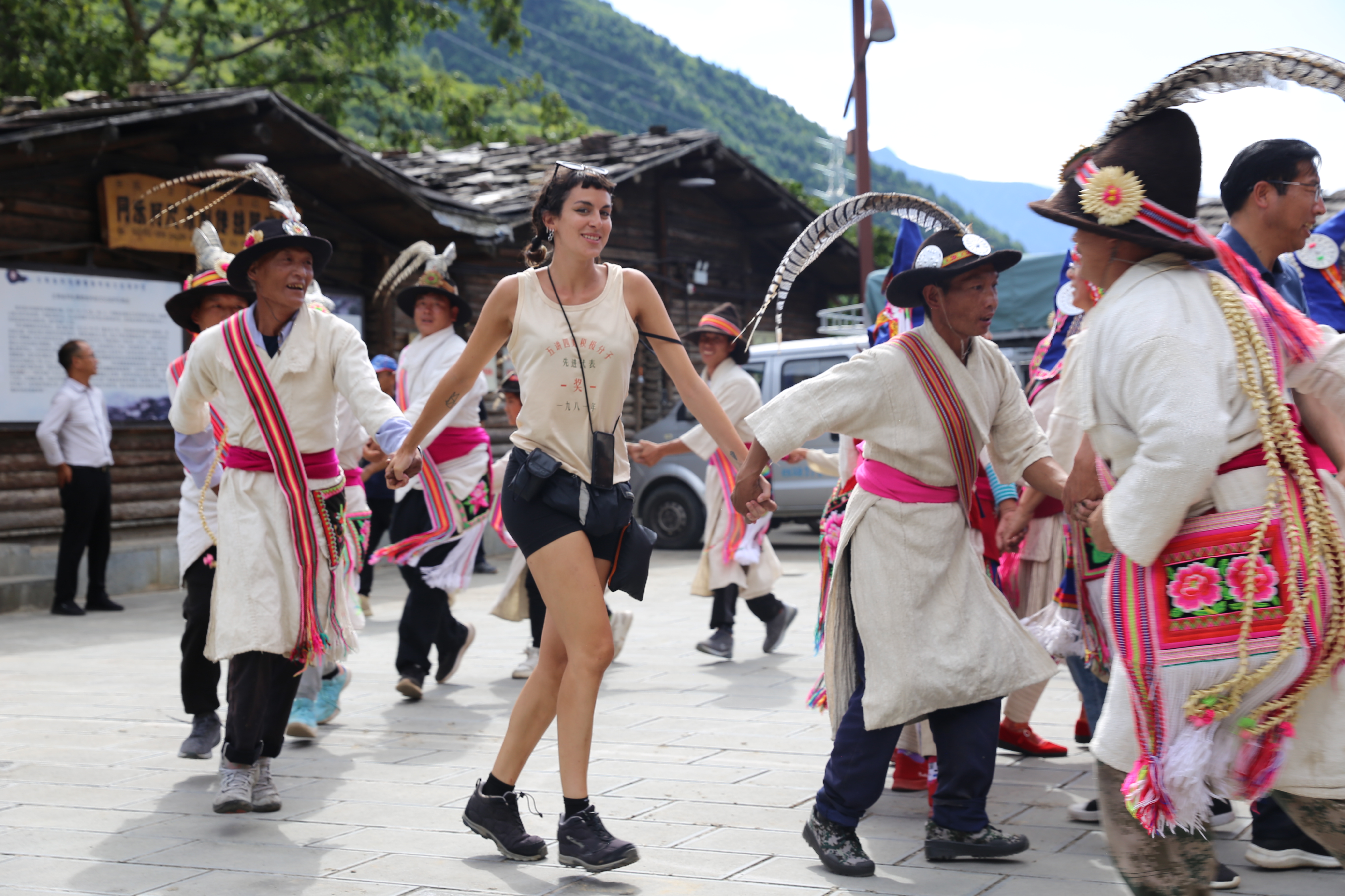 8月14日,維西縣葉枝鎮(zhèn)同樂村村民身著盛裝,跳起傈僳族特色民間歌舞阿尺目刮,歡迎遠道而來的客人。