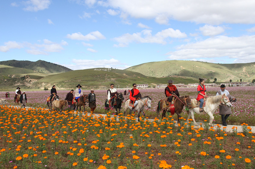 2017年開始,理塘縣把旅游融入生態(tài)修復中,實施旅游扶貧新村建設(shè)項目,加快基礎(chǔ)設(shè)施建設(shè),打造特色旅游產(chǎn)業(yè),將漢戈村800畝沙化地新建成鮮花帶,配套生態(tài)旅游停車場、花村旅客接待中心、生態(tài)旅游廁所等服務(wù)設(shè)施,開展村容村貌整治工作,補充“古道驛站,牧民天堂”牧區(qū)生活體驗區(qū)、鍋莊廣場、特色帳篷酒店等旅游項目。