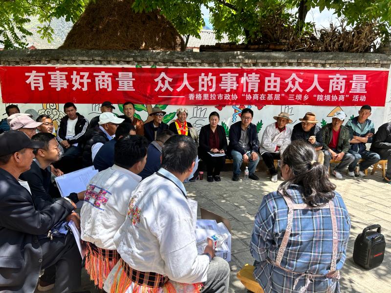 2023年4月26日,香格里拉市政協(xié)在三壩鄉(xiāng)開展“協(xié)商在基層”“院壩協(xié)商”活動。
