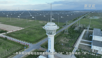 一條條高壓輸電線連接著塔拉灘的“光”與龍羊峽的“水”,實現(xiàn)塔拉灘上經(jīng)濟效益和生態(tài)效益的共贏。