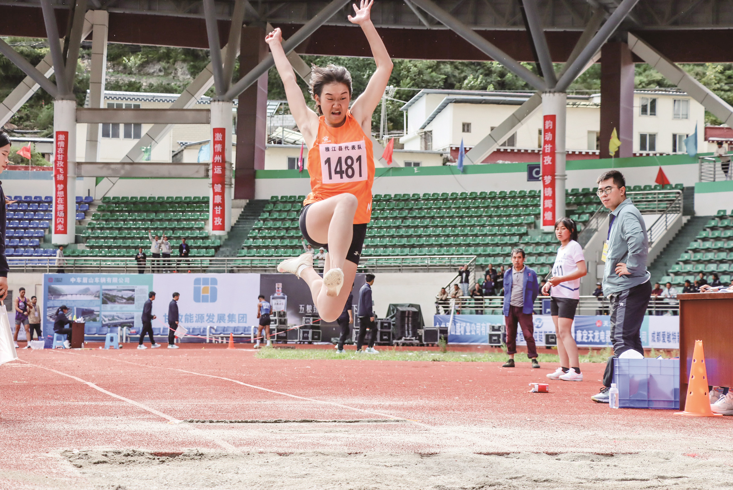 9月13日下午,康定北門體育場內(nèi)歡聲雷動(dòng)、彩旗飄揚(yáng)。州第四屆運(yùn)動(dòng)會(huì)田徑類比賽中的成人組男子100米預(yù)賽、成人組女子100米預(yù)賽、甲組男子100米預(yù)賽、甲組女子100米預(yù)賽、成人組男子800米決賽、成人組女子800米決賽、甲組男子鉛球決賽和甲組女子跳遠(yuǎn)決賽8個(gè)田徑比賽項(xiàng)目,在這里正式開賽。比賽中,甲組男子鉛球和甲組女子跳遠(yuǎn)項(xiàng)目打破了歷屆州運(yùn)會(huì)最高紀(jì)錄。