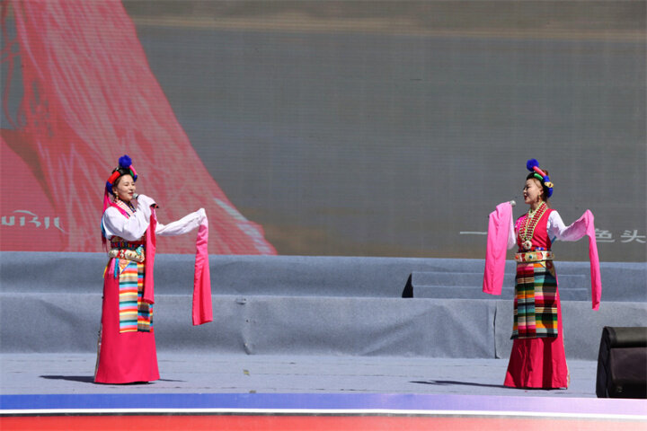 來自迪慶州文化館、俏夕陽藝術團、雍恰碩藝術團等的演員們帶來了《阿尺目刮》《犁牛調》《洛吉葫蘆笙打跳》等歌舞表演和走秀,為現場群眾帶來了一場文化盛宴,充分展現了迪慶州各族兒女共同團結進步、共同繁榮發(fā)展的時代風貌。