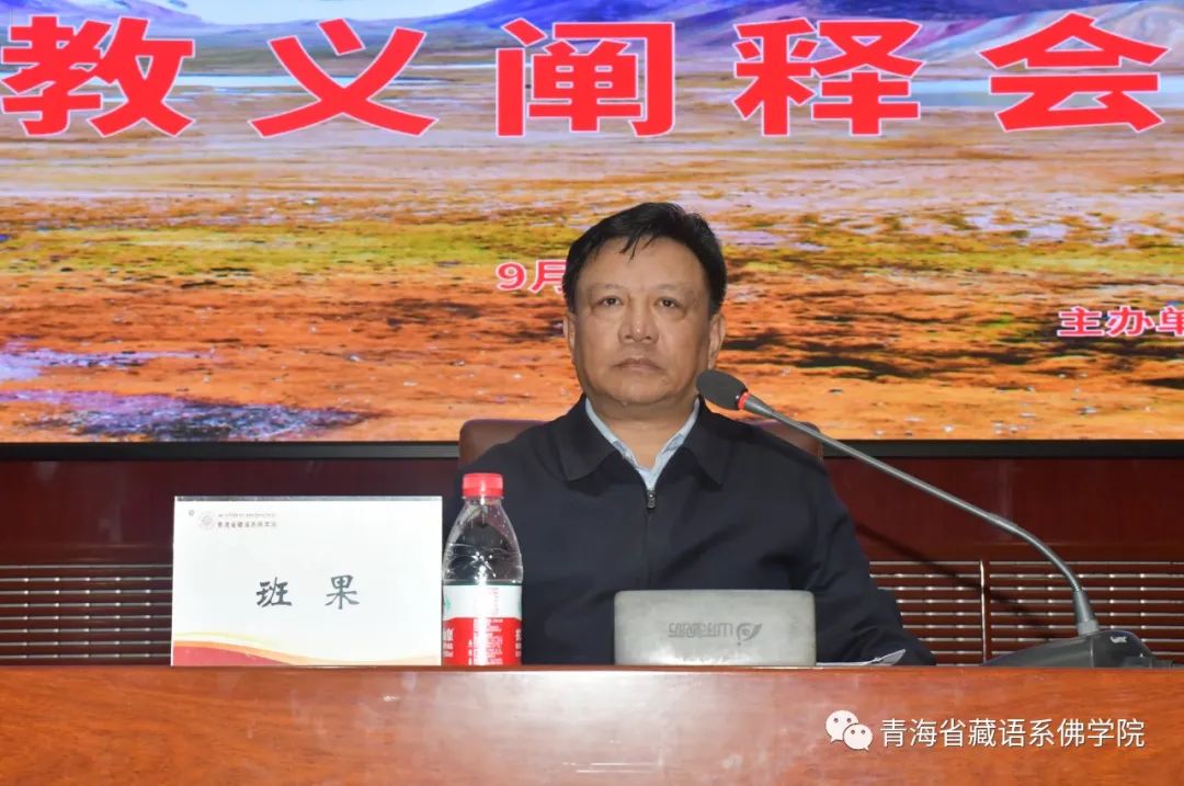 此次會(huì)議由青海省藏語系佛學(xué)院、三江源生態(tài)保護(hù)基金會(huì)、青海省藏傳佛教研究中心聯(lián)合舉辦。省委常委、省委統(tǒng)戰(zhàn)部部長班果出席并講話,第十三屆全國人大民族委員會(huì)副主任、中央民族大學(xué)教授丹珠昂奔,三江源生態(tài)保護(hù)基金會(huì)理事長鄧本太,中國藏學(xué)研究中心原副總干事洛桑靈智多杰,省政協(xié)副主席、省藏語系佛學(xué)院院長仁青安杰等領(lǐng)導(dǎo)出席。