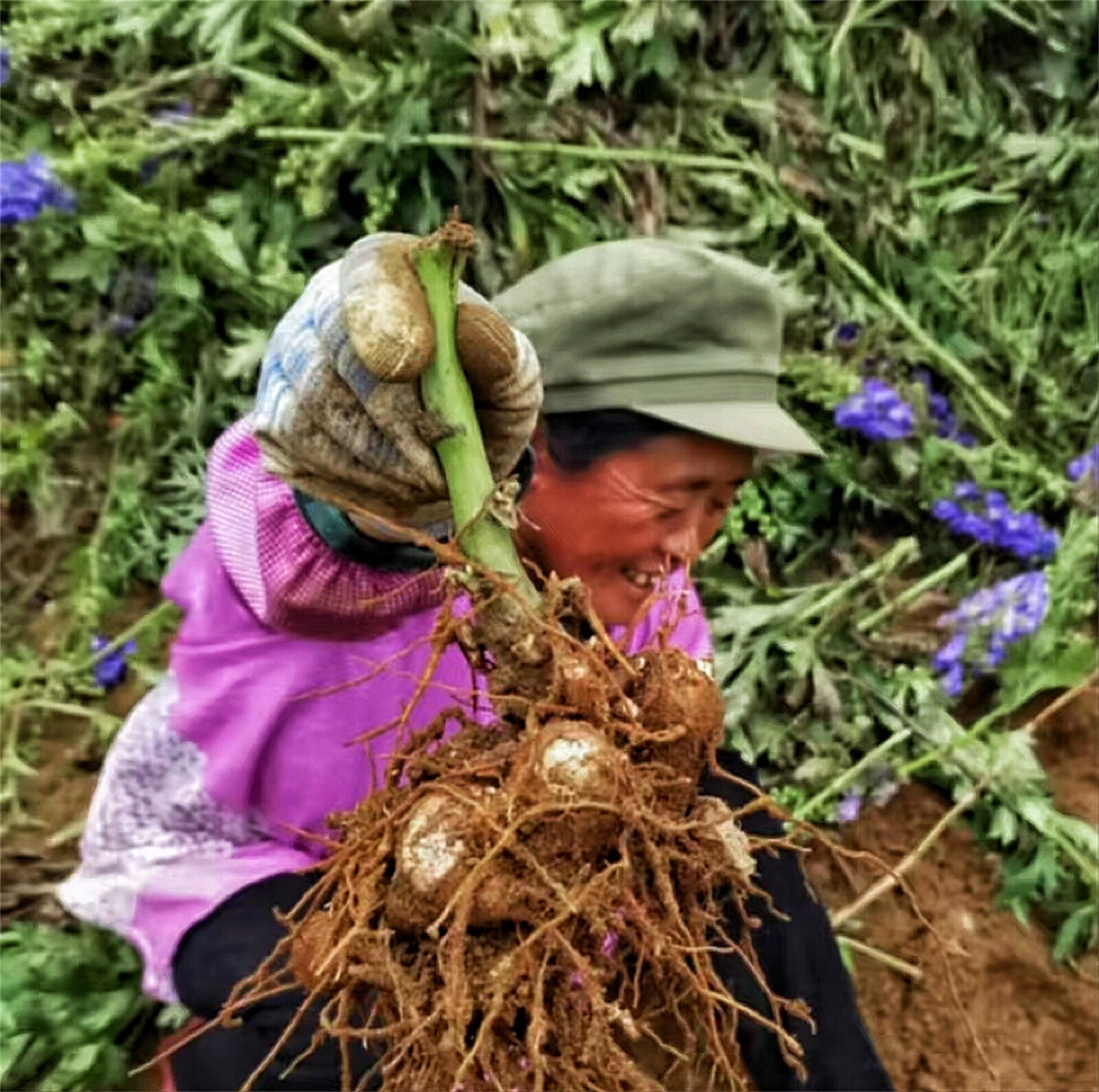 近日,維西傈僳族自治縣攀天閣鄉(xiāng)美洛村400余畝附子喜獲豐收。田間地頭,村民們?nèi)宄扇?,通力協(xié)作,將一顆顆采挖出來的附子收集成籮,集裝成袋,看著眼前的一袋袋附子,村民們都樂得合不攏嘴?!敖衲旮阶赢a(chǎn)量很高呢,按照去年的市場價今年一畝最多可有2萬收入”美洛村副主任和麗新說。