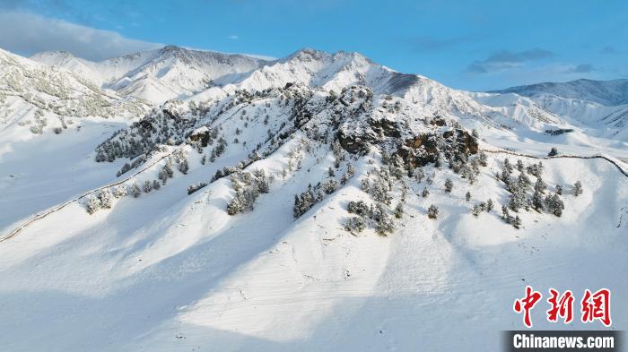 10月以來,位于柴達木盆地的青海省海西蒙古族藏族自治州都蘭縣迎來入秋后降雪,雪后的都蘭縣銀裝素裹,山上的樹木掛滿了晶瑩的雪花,草地上覆蓋了一層厚厚的積雪,俯瞰群山,在皚皚白雪的映襯下,峰谷相連、如夢如幻,美不勝收,如同一幅水墨畫鋪展在天地間。