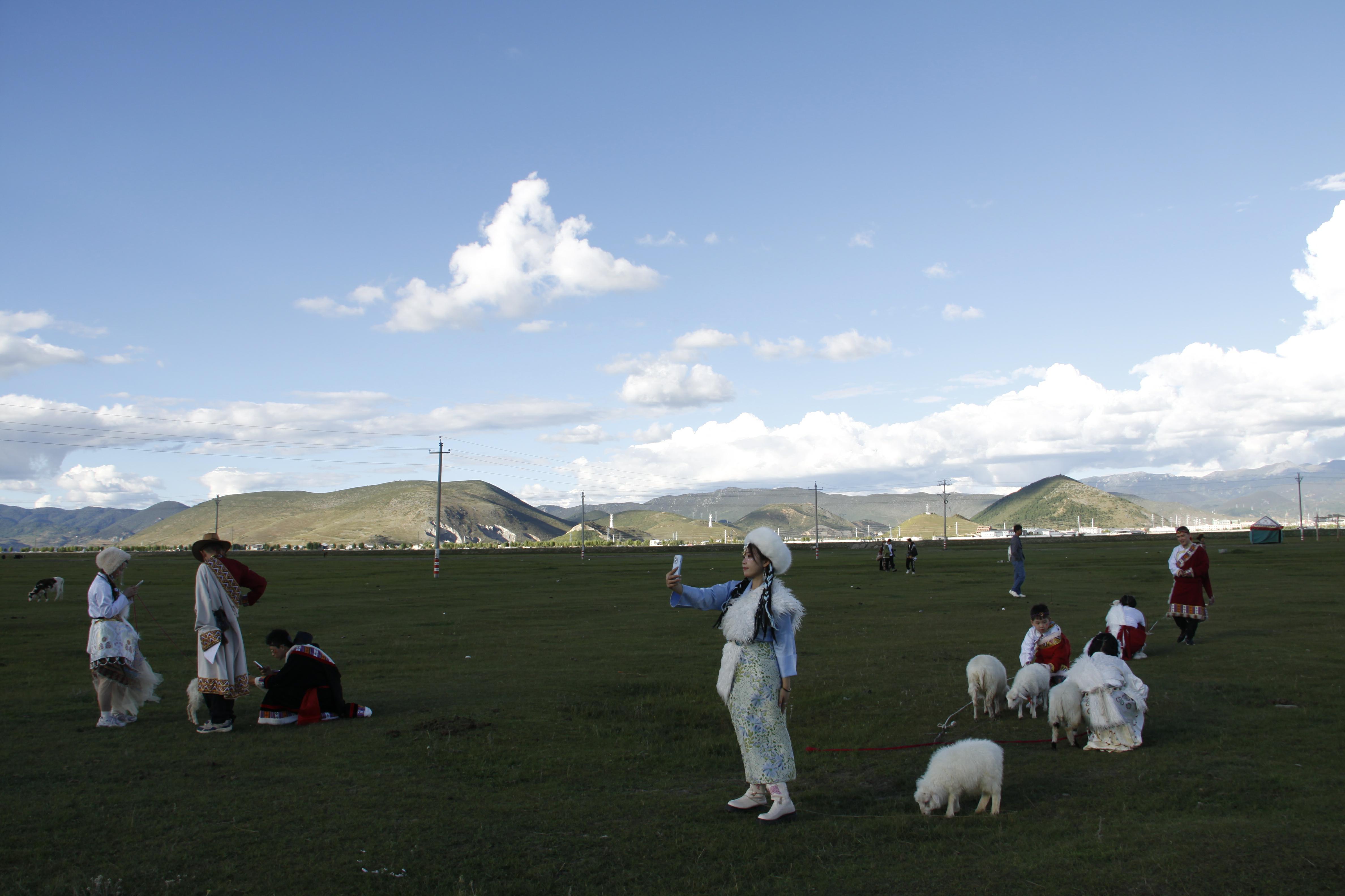 時下,迪慶高原秋景如畫。眾多游客紛紛到香格里拉市建塘草原打卡,在藍天白云下,有的騎馬賞景,有的身著民族服裝旅拍,還有的與小綿羊親密接觸,構(gòu)成了一道道亮麗的風景線。