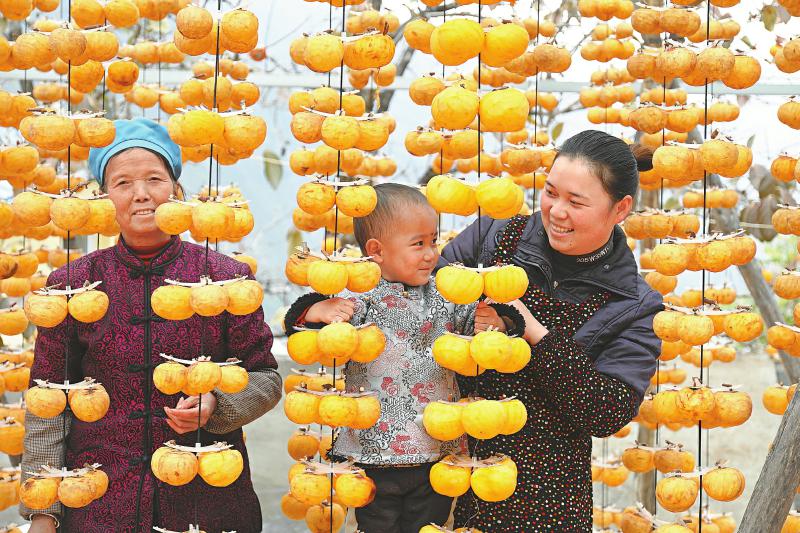 村民曬柿子,做柿餅。周琳 攝