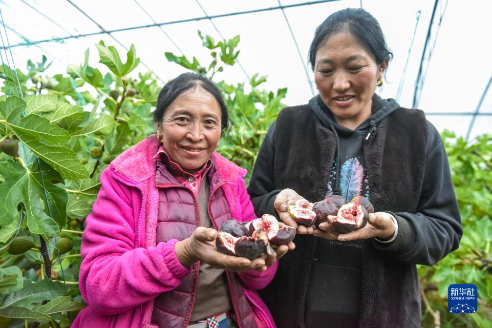 10月13日,在理塘縣瑪吉阿米花園農(nóng)莊的高原蔬菜大棚里,當?shù)夭刈迦罕娭粳敐扇剩ㄗ螅┖退湔故静烧臒o花果。新華社記者 黃曉勇 攝