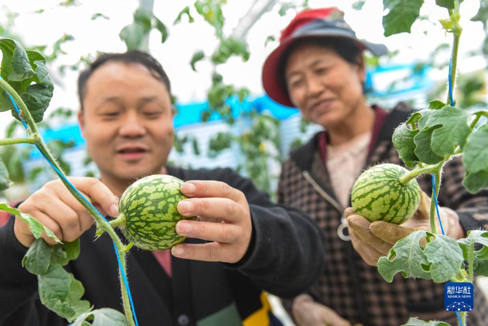 10月13日,在理塘縣瑪吉阿米花園農(nóng)莊的智慧農(nóng)業(yè)無土栽培館,農(nóng)莊負責(zé)人丁義(左)向當?shù)夭刈迦罕娮楷敁碇抑v解玲瓏西瓜的管理技術(shù)和注意事項。新華社記者 黃曉勇 攝
