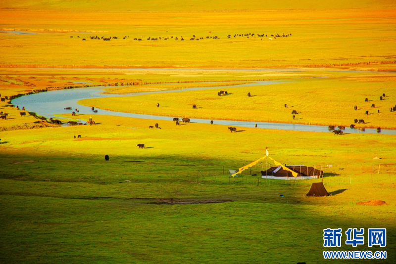 漫澤塘濕地大草原牛羊成群。新華網(wǎng) 夏雪東爾 攝