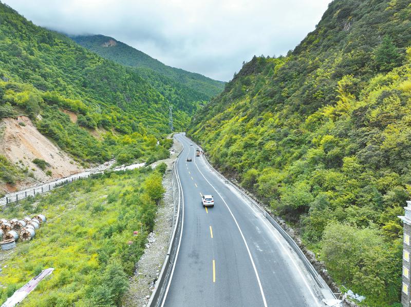 加寬車道、減少慢車和小車之間的行車干擾成為設計重點,在康定往折多山埡口方向的爬升路段,項目將既有公路由兩車道拓寬為三車道,在最右側增設一條爬坡車道,讓重載車輛和小汽車各行其道,擁堵難題迎刃而解。
