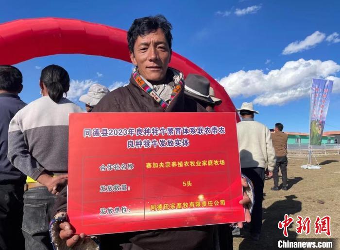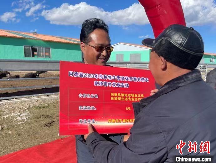 圖為同德縣牦牛產(chǎn)業(yè)園為牧民分發(fā)良種牛犢儀式現(xiàn)場。陳宗淇 攝