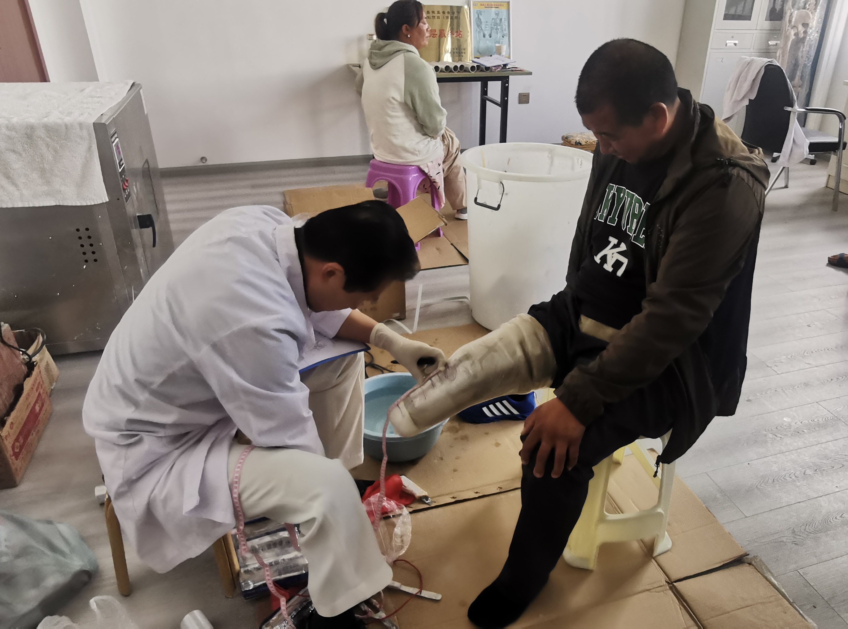 近日,在州康復(fù)中心,隨著30名肢體殘障群體的假肢適配成功,2023年省級(jí)殘疾人事業(yè)彩票公益金助聽器、假肢適配服務(wù)項(xiàng)目圓滿結(jié)束。據(jù)了解,該項(xiàng)目在今年還為我州300名聽力殘障群體免費(fèi)適配助聽器。圖為醫(yī)生為肢體殘障人士適配假肢。