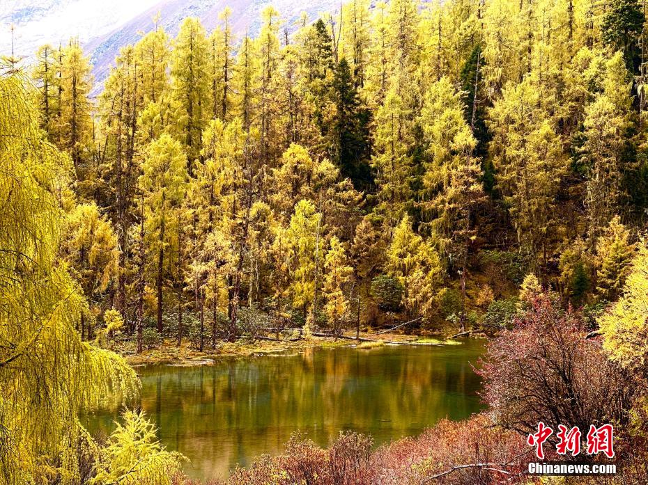 雪山邂逅彩林和海子美不勝收。陳邦亮 攝