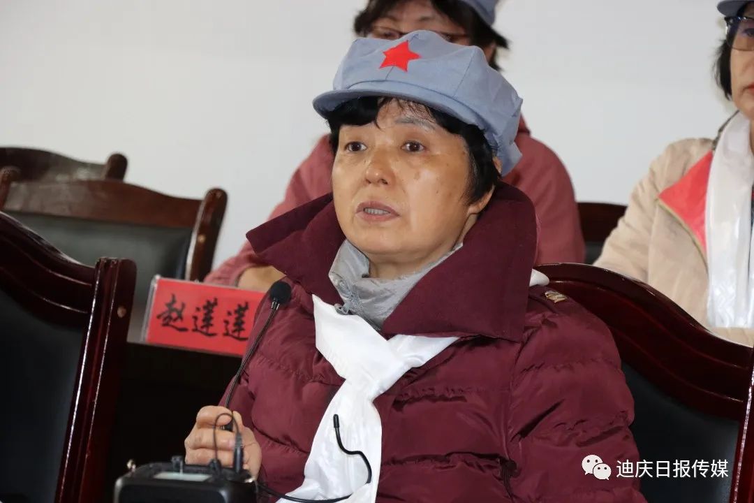 甘祖昌之女甘仁榮回憶起父親,眼中噙滿淚水。其父親甘祖昌,中國(guó)人民解放軍少將軍銜,被稱為“將軍農(nóng)民”。1926年參加村農(nóng)民協(xié)會(huì),1927年加入中國(guó)共產(chǎn)黨,翌年參加中國(guó)工農(nóng)紅軍。在革命生涯中,歷任湘贛軍區(qū)紅軍兵工廠副科長(zhǎng)、八路軍第三五九旅供給部軍需科科長(zhǎng)、三五九旅供給部副部長(zhǎng)、晉綏軍區(qū)三五九旅供給部部長(zhǎng)、西北野戰(zhàn)軍第二縱隊(duì)后勤部部長(zhǎng)、第一野戰(zhàn)軍二軍后勤部部長(zhǎng)等職。先后參加了國(guó)內(nèi)革命戰(zhàn)爭(zhēng)、抗日戰(zhàn)爭(zhēng)、解放戰(zhàn)爭(zhēng),為了黨和人民的事業(yè)出生入死、數(shù)次負(fù)傷 。中華人民共和國(guó)成立后,甘祖昌歷任新疆軍區(qū)后勤部副部長(zhǎng)兼供給處處長(zhǎng),兼財(cái)務(wù)處處長(zhǎng),新疆軍區(qū)后勤部部長(zhǎng)。1955年被授予少將軍銜,榮獲八一勛章、獨(dú)立自由勛章、解放勛章等 。1957年,甘祖昌在辭去新疆軍區(qū)后勤部部長(zhǎng)的職務(wù)后,帶著家人回到闊別20多年的家鄉(xiāng),從此開始了29年的“農(nóng)民生涯”。從江西到延安再到新疆,甘祖昌將人生中三分之二的時(shí)光都奉獻(xiàn)給了國(guó)家獨(dú)立和民族解放的革命斗爭(zhēng)中。其母親龔全珍是開國(guó)少將甘祖昌夫人、江西省萍鄉(xiāng)市南陂小學(xué)原校長(zhǎng)。1957年8月,龔全珍隨丈夫甘祖昌回家鄉(xiāng)江西省蓮花縣務(wù)農(nóng)并一直從事鄉(xiāng)村教師工作。離休后,又扶貧助學(xué),開辦“龔全珍工作室”服務(wù)社區(qū)、群眾。著有紀(jì)實(shí)作品《我和老伴甘祖昌》。習(xí)近平總書記先后兩次親切接見龔全珍,親切地稱她為“老阿姨”。龔全珍曾榮獲第四屆全國(guó)道德模范稱號(hào)、“感動(dòng)中國(guó)”2013年度十大人物 、全國(guó)優(yōu)秀共產(chǎn)黨員 、“感動(dòng)江西十大教育年度人物”“全國(guó)模范退役軍人”等稱號(hào)。甘仁榮在座談會(huì)上談及父母從小對(duì)子女嚴(yán)苛的家教,從飯桌上絕不能浪費(fèi)一粒糧的教育再到了父母離開城市回農(nóng)村搞建設(shè)的過(guò)往,從幼兒的少不更事,到如今自己親身來(lái)到迪慶,感受父輩走過(guò)的路,真切地體會(huì)到了父輩身上不畏艱險(xiǎn)、堅(jiān)韌不拔、頑強(qiáng)拼搏、攻堅(jiān)克難的奮斗精神和為黨和人民的事業(yè)“鞠躬盡瘁、死而后已”的偉大獻(xiàn)身精神?,F(xiàn)場(chǎng)氣氛莊嚴(yán)肅穆,令人感動(dòng)。