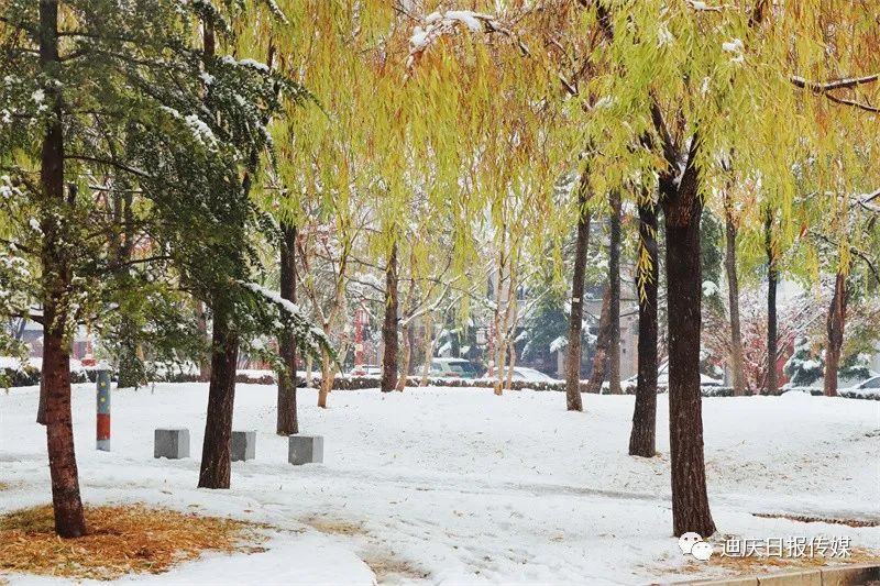 白雪與黃葉相映成趣,是這個初雪日別樣的風(fēng)景。