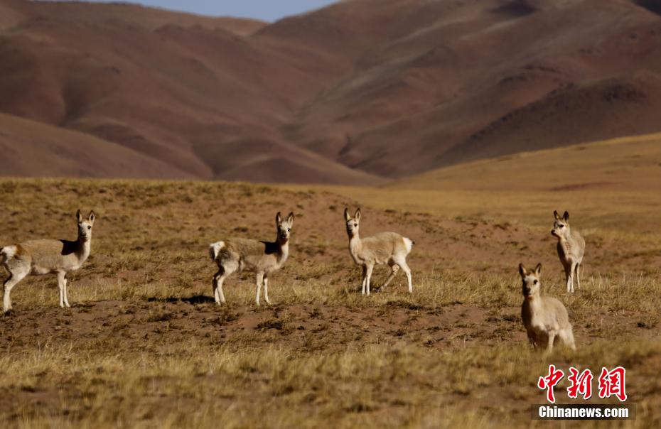 日前,在青??煽晌骼飮壹壸匀槐Wo(hù)區(qū),攝影愛好者拍攝到絢麗雄渾的自然風(fēng)光和多種野生動物。圖為可可西里自然保護(hù)區(qū)內(nèi)的藏羚羊。葛永祥 攝