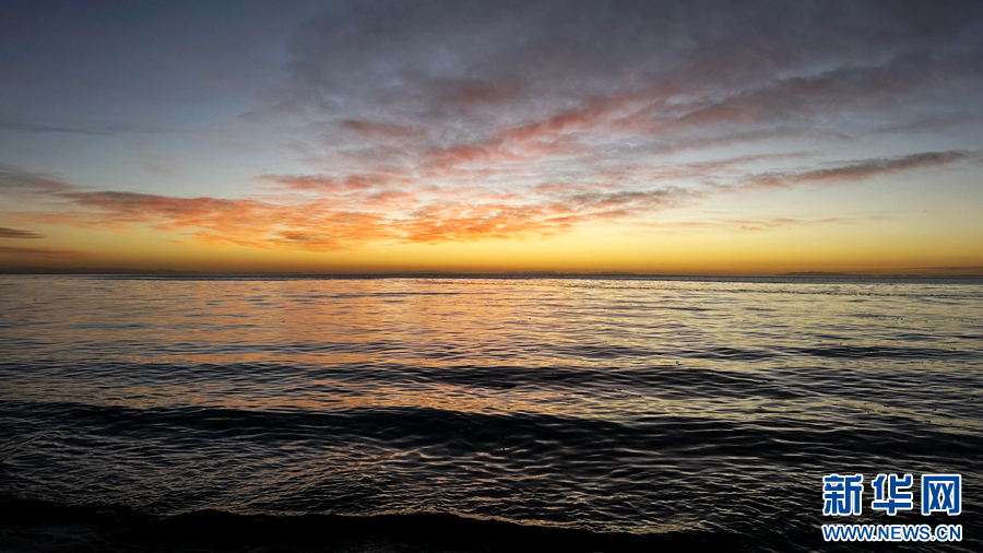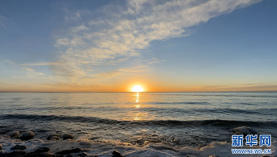 寒冬時節(jié),青海湖顯露出寧靜內斂的一面。清晨,在波浪聲與風聲的伴奏下,一輪紅日緩緩升起,將天邊的云染成了彩色,與波光粼粼的湖面相映,宛如一幅絕美的風景畫。