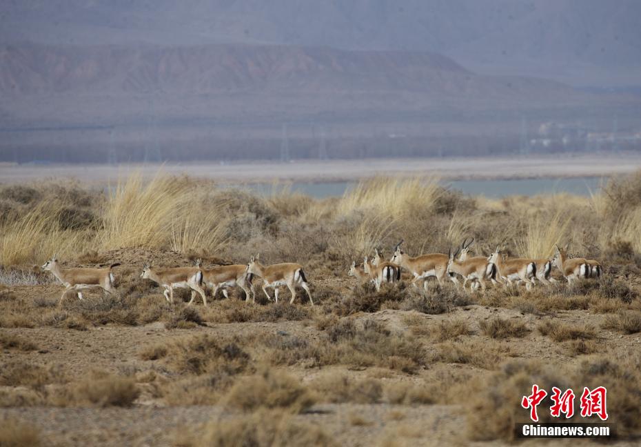 高原初春,青海省海西蒙古族藏族自治州烏蘭縣都蘭湖國家濕地公園蒼茫壯闊,成群的鵝喉羚在草地上奔跑、覓食,無比愜意。[詳細(xì)] -