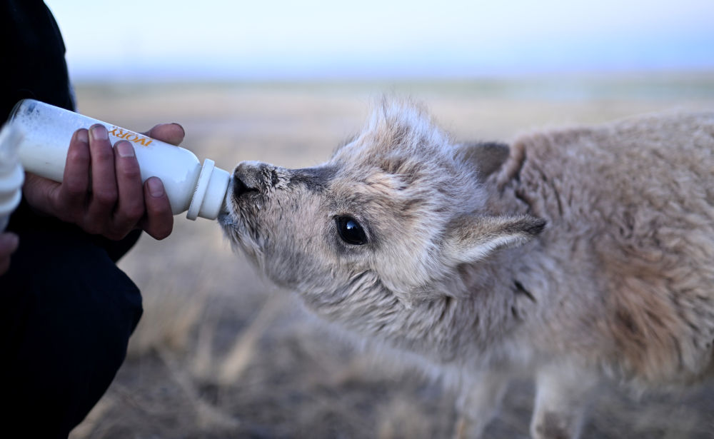 據(jù)駐索南達杰保護站巡山隊員才文多杰介紹,這3只即將6月齡的藏羚羊幼仔是2023年藏羚羊遷徙產(chǎn)仔季,巡山隊員在可可西里腹地卓乃湖救助的?!斑w徙產(chǎn)仔途中,如果遭遇惡劣天氣、天敵襲擊,藏羚羊幼仔很容易與羊群走散,我們碰到這種‘落單’的小藏羚羊,都會抱回保護站。”才文多杰說。