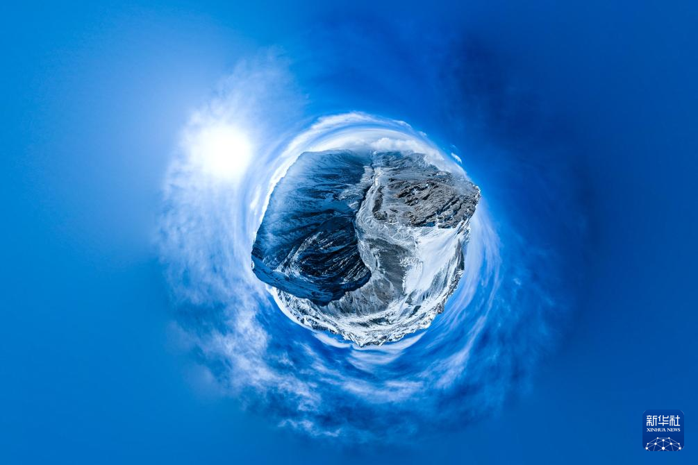 這是1月23日在青海省海北藏族自治州門源回族自治縣境內(nèi)拍攝的崗什卡雪峰(無人機全景照片)。新華社記者 張龍 攝